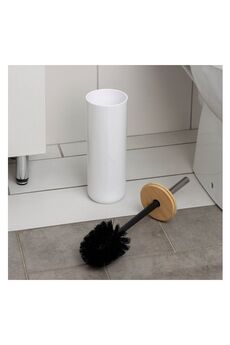 Состав: пластик, бамбук. Цвет: белый. Вид утановки: напольный. Эргономичный ерш с белым пластиковым корпусом, устойчив к влаге, эффективно очищает, подходит для любого интерьера санузла.