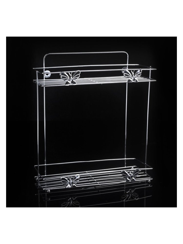 Откройте новые возможности организации пространства в вашей ванной или на кухне с двухъярусной полкой с изящным декором в виде бабочек. Идеальный выбор для хранения моющих средств, аксессуаров, мелкой бытовой химии и других нужных мелочей, обеспечивающий порядок и быстрый доступ к предметам в зоне частого использования.