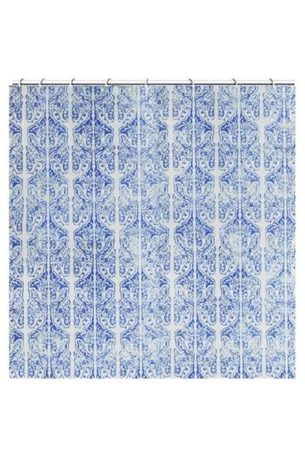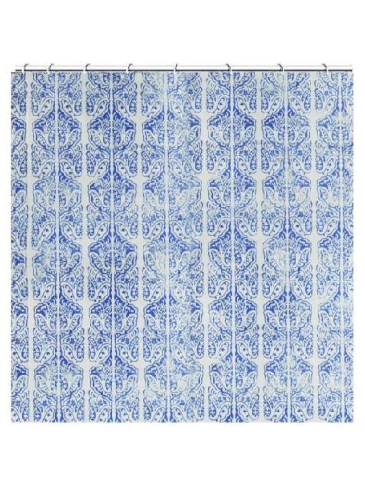 Штора для ванной 1,8х1,8 м в голубом цвете с дизайном "Барокко". Из полиэстера с водоотталкивающей пропиткой, в комплекте кольца для крепления.