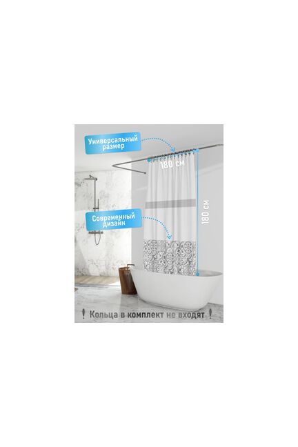 Штора д/ванной "Patchwork" 180*180см, полиэстер, белая FOR-PH-PATCH в Вяземский