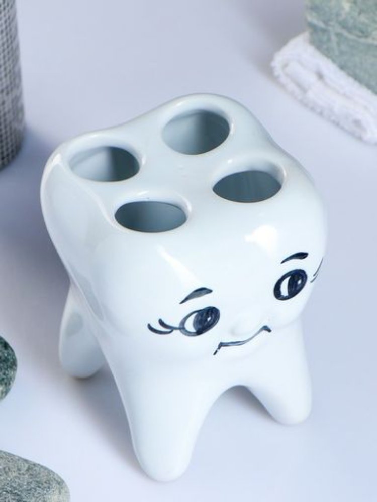 Оптимальное решение для поддержания чистоты и порядка в ванной комнате или санузле: держатель для зубных щеток оригинальной формы в виде белого зуба. Легко впишется в любой современный интерьер, акцентируя внимание на заботе о гигиене и стиле.