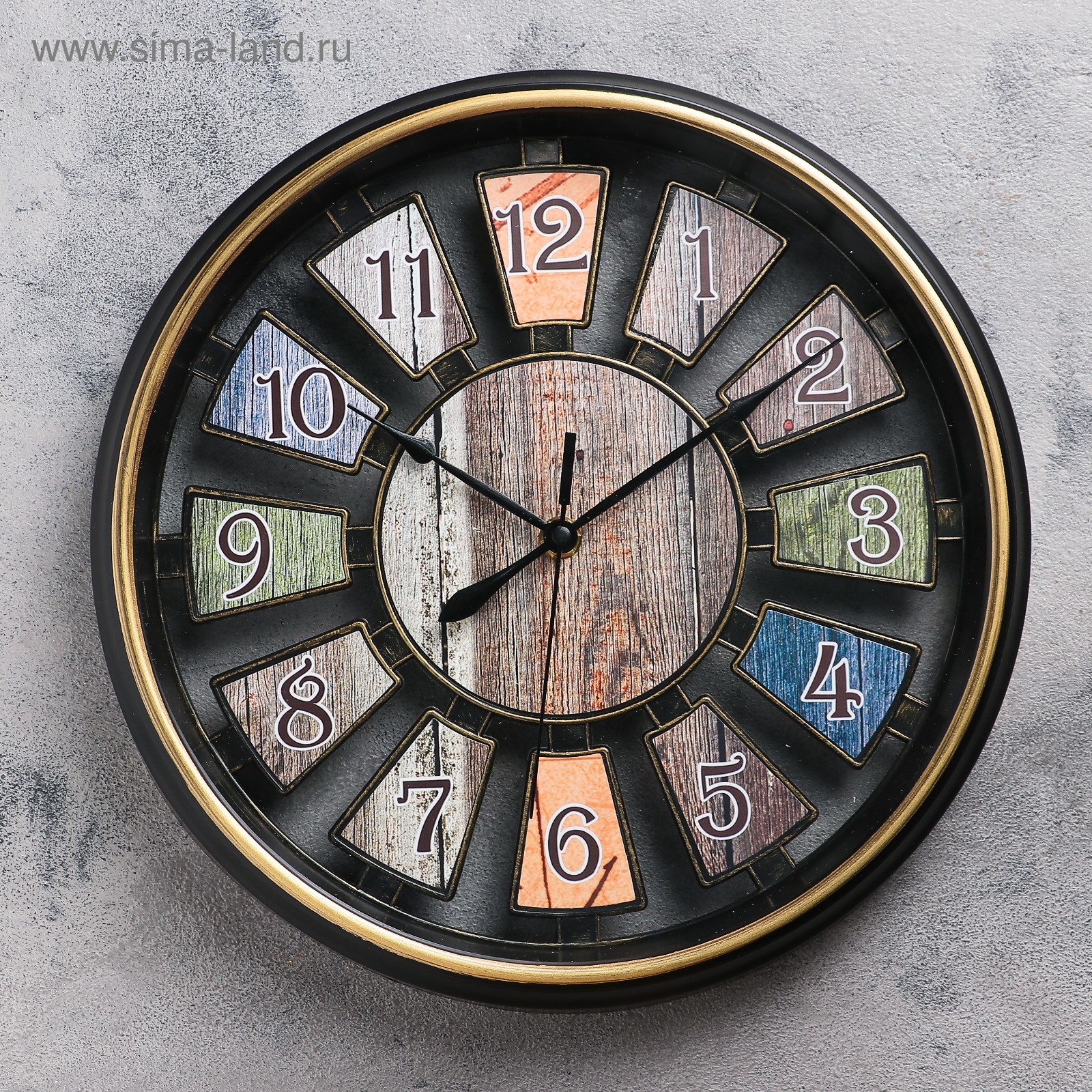 Компактные настенные часы d=30 см с крупными цифрами и бесшумным механизмом подходят для офиса, мастерской и дома.