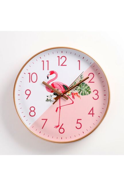 Настенные часы ø30 см с тихим механизмом и стильным рисунком фламинго отлично подойдут для дома, офиса или кафе. Прочные, яркие, легко крепятся.