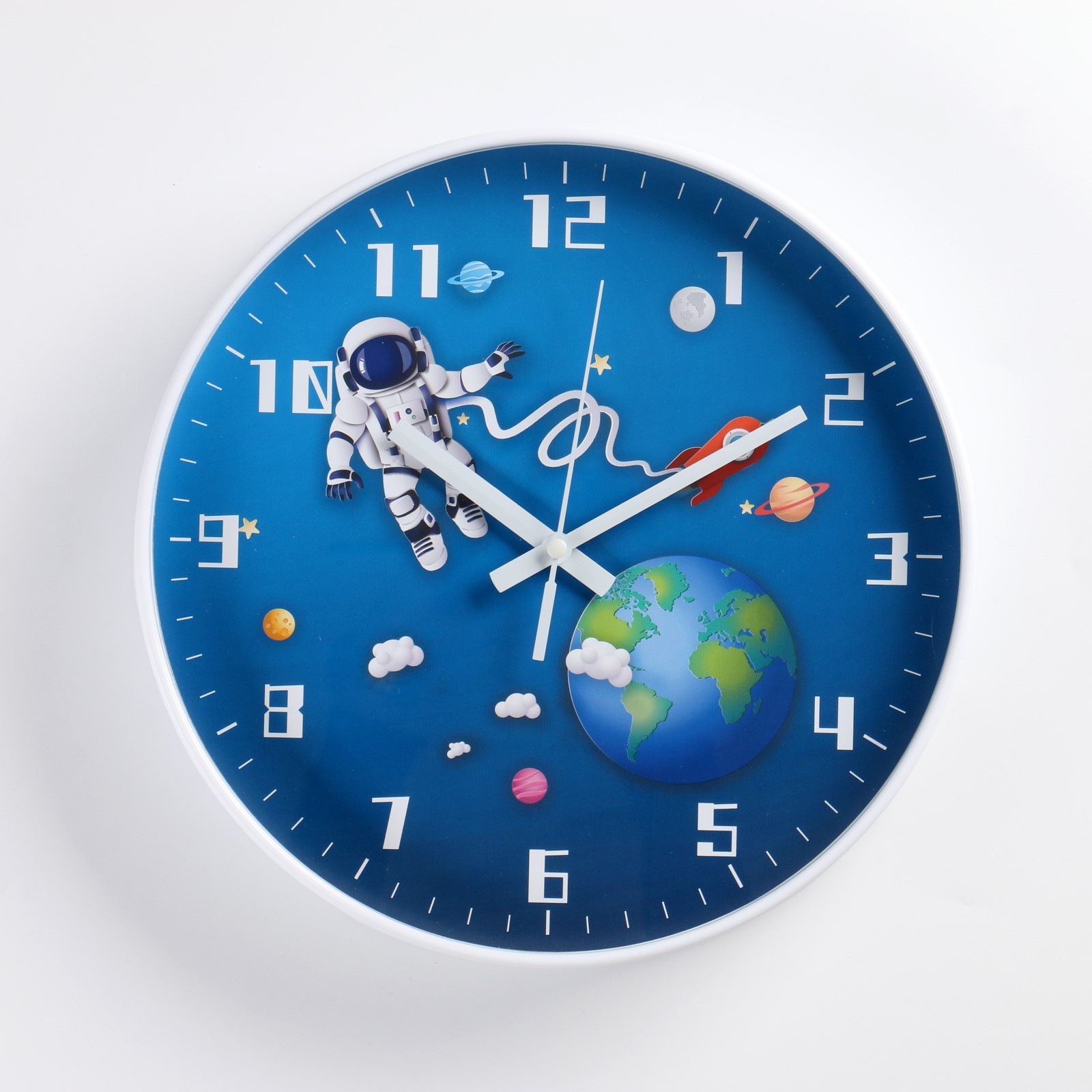 Яркие детские часы с космическим дизайном и большими цифрами, способствуют обучению времени, безопасные и легко устанавливаются на стену.