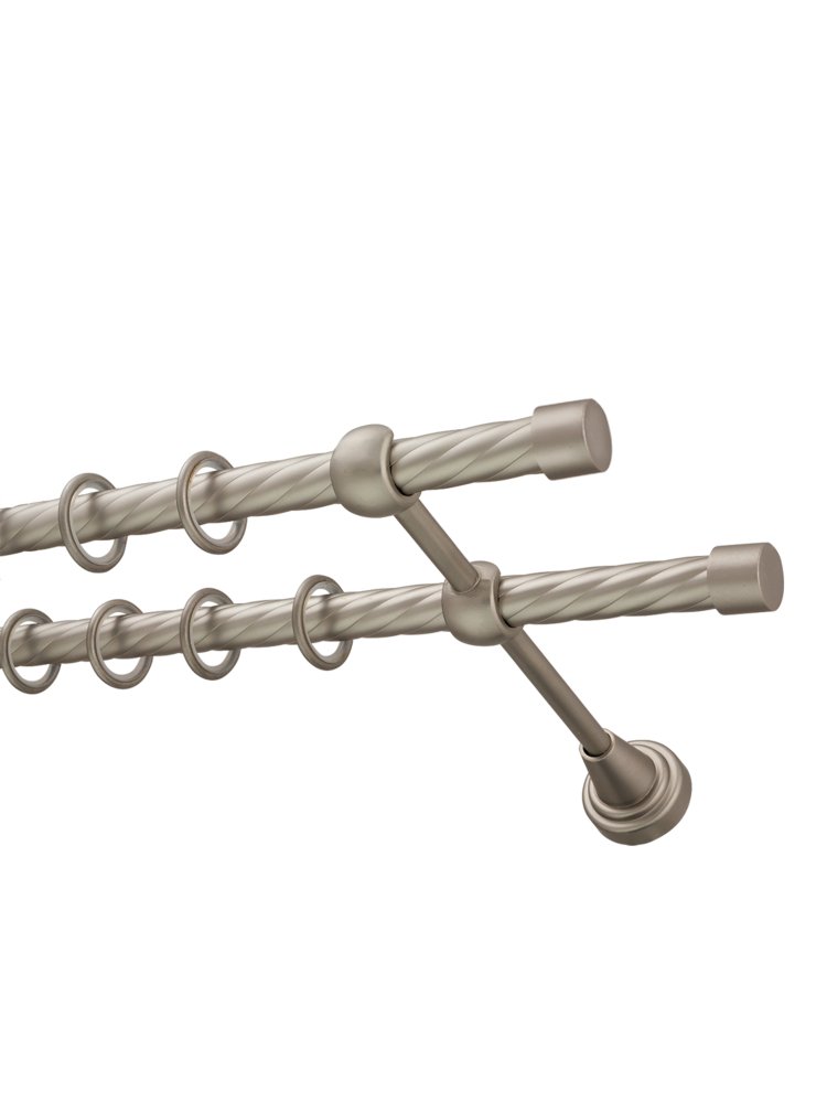 Карниз кованый двухрядный с диаметром трубы 16 мм и длиной 2,8 м в цвете сатин представляет собой стильное и практичное решение для оформления оконных проемов. Изготовлен из прочного металла с коваными элементами в виде твистера, что придает изделию элегантный и изысканный вид. Подходит для тяжелых и легких штор благодаря двухрядной конструкции, позволяющей комбинировать портьеры и тюль. Комплект включает все необходимые крепления для установки. Цвет сатин обеспечивает универсальность и гармоничное сочетание с различными стилями интерьера.