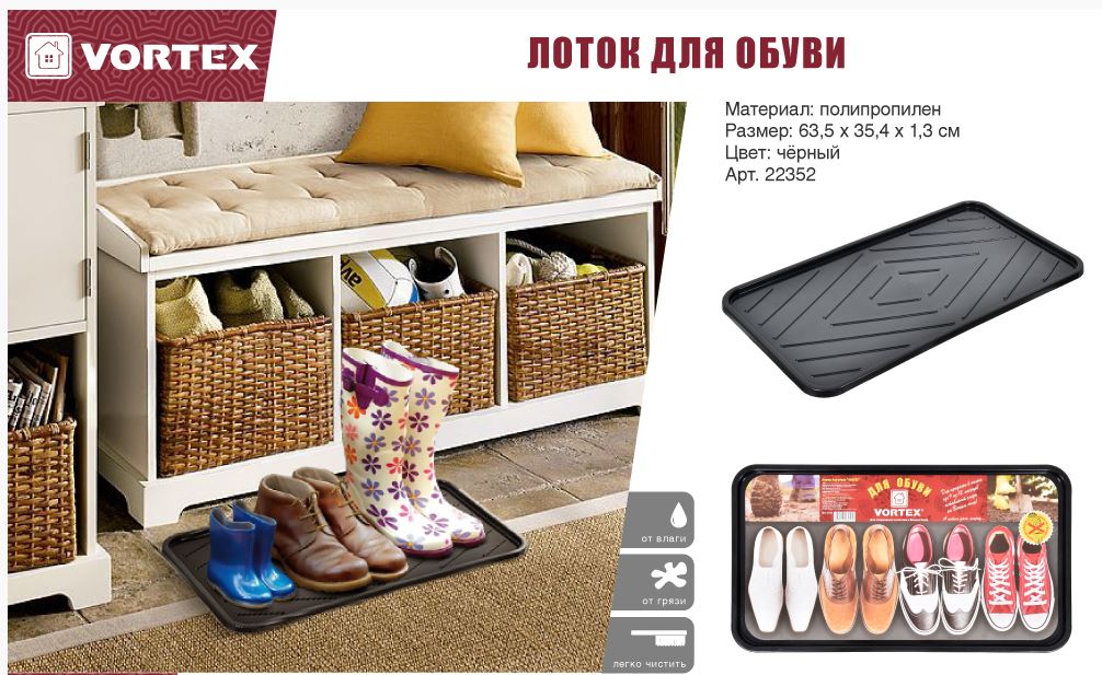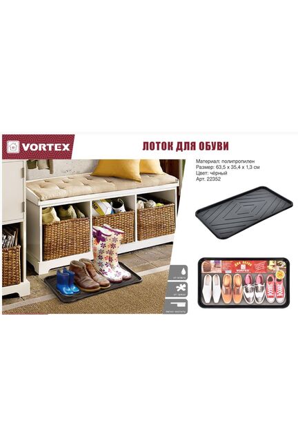 Коврик-лоток для обуви полипропиленовый 63,5*35,4*1,3см, чёрный в Вяземский