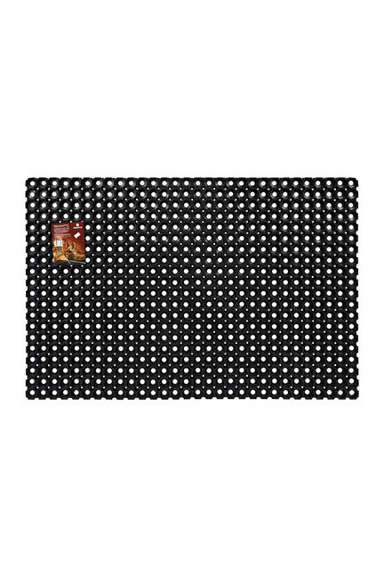 Структура коврика задерживает снег, крупные частицы грязи, препятствует скольжению. Устойчив к антигололедным реагентам и моющим средствам. Температурный диапазон: t° от + 50 до - 50 °С. Прочный резиновый коврик 80×120×2,2 см: защита пола, антискользящий эффект, ячеистая конструкция, подходит для входов и производственных помещений.