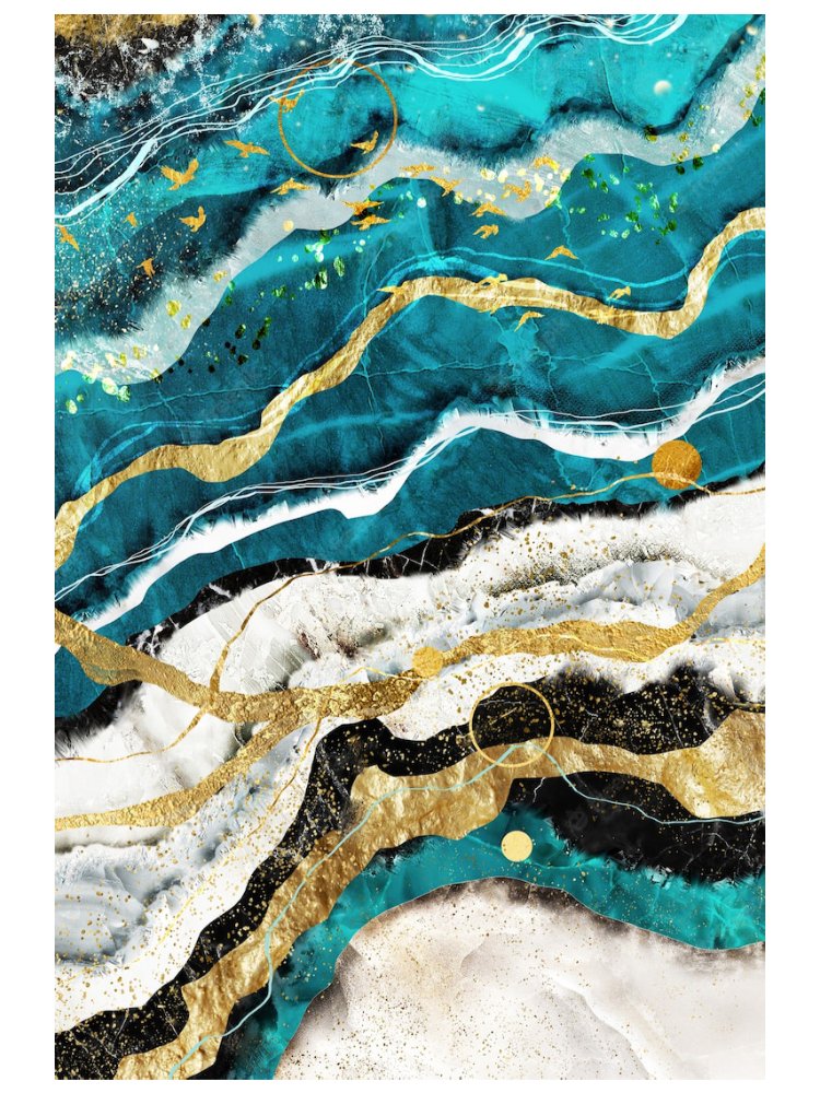 Современный постер 48×39 см с эффектом бирюзового мрамора для стильного оформления стен. Легко монтируется, устойчив к выцветанию, безопасен.