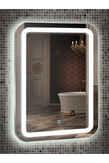 Современное зеркало 550×800 мм с LED-подсветкой и сенсорным выключателем, влагозащитой и возможностью вертикальной или горизонтальной установки.