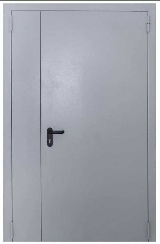 Противопожарная металлическая дверь EI60, 1480×2080 мм, двустворчатая, серый RAL 7035, защита от огня до 60 минут, надёжность и долговечность.