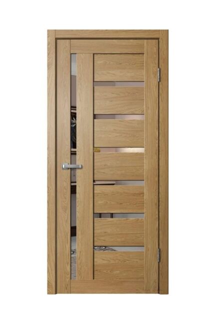 Элегантное решение для современного интерьера — дверь с зеркальным вставкой и покрытием под "Дуб европейский" гармонично впишется в спальню, прихожую, ванную или гардеробную. Обеспечивает визуальное увеличение пространства, наполняет помещение светом и делает комнату более функциональной.