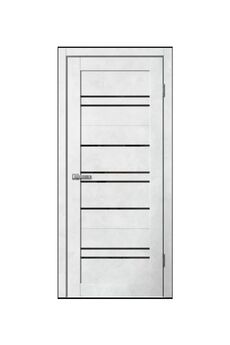 Стильная дверь 700 мм, светлый бетон с черным стеклом, устойчива к износу, визуально расширяет пространство, легко монтируется и обслуживается.