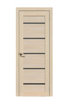 коллекция La Stella.царговая конструкция отличается высокой прочностью и многовариантностью отделки. МДФ наполнение двери обладает достаточно высокой жесткостью и хорошей тепло- и звукоизоляцией. Покрытие двери - Экошпон - защищает ее от высокой влажности и любых механических повреждений Современное межкомнатное полотно 800 мм, ясень латте, с черным стеклом — стиль, прочность, свет и приватность для вашего дома или офиса.