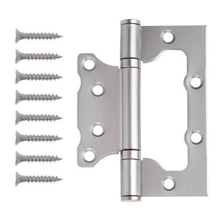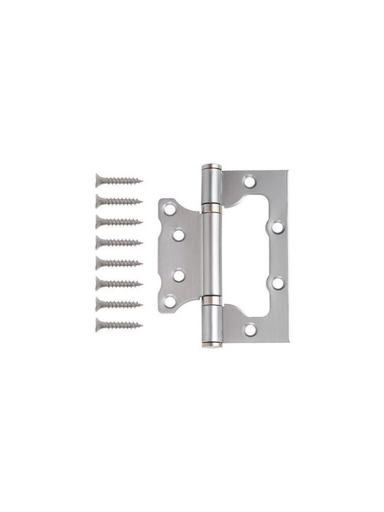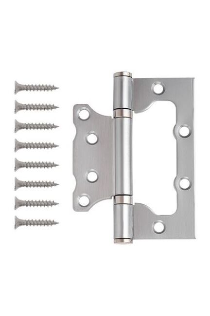 Стальная петля без врезки 100×75×2,5 мм, хром, универсальная, устойчива к коррозии, проста в установке, подходит для межкомнатных и входных дверей.