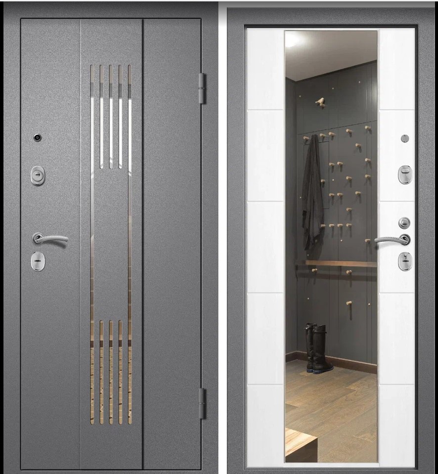Количество контуров уплотнения 3 контура Глубина короба 135 мм Толщина полотна 105 мм Наполнитель Минеральная плита Уплотнитель Специализированный дверной уплотнитель Основной замок Гардиан 30.15 (сувальдный) Дополнительный замок BORDER ЗВ 1-8Г (цилиндровый) Фурнитура Глазок, Броненакладка, Ночная задвижка, Эксцентрик Стальная дверь с утеплением, антивандальным покрытием, надёжными замками и стильным оформлением для безопасного и комфортного входа.
