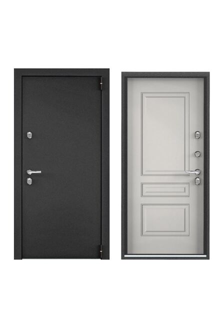 Тип внешней отделки: порошково-полимерное покрытие. Тип внутренней отделки: панель МДФ с ПВХ покрытием. Верхний замок: BORDER 3В 8-8Г/15, 4-го класса взломостойкости по ГОСТ 5089-2011. Нижний замок: Crit A30-4Л, 2-го класса вломостойкости по ГОСТ 5089-2011. Декоративные накладки на ключевину сувальдного замка с направляющими для ключа и подпружиненными шторками от продувания. Противосъемные ригели с петлевой стороны полотна 2 шт. Ночная задвижка. Прочная стальная дверь с теплоизоляцией, тройным контуром уплотнения и стильным дизайном, для дома и квартиры. Размер 950×2050 мм, правое открывание.
