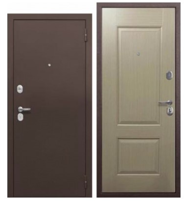 ПОКРЫТИЕ: внешнее: атмосферостойкое порошково-полимерное, внутреннее: меламиновая панель. ЗАМКИ: Основной: цилиндровый Zirh Kilit(аналог KALE), диаметр ригелей: 16 мм. Дополнительный: сувальдный Zirh Kilit(аналог KALE), диаметр ригелей: 16 мм. Декоративный накладки на оба замка. Толщина дверного полотна: 70 мм. Наполнитель: минеральная плита, плотность 70 кг/м2. Уплотнитель: 2 контура уплотнителя из вспененной резины. Ручка: раздельная, цвет - хром. Глазок: широкого обзора, цвет - хром. Петли: 2 шт., наружные, открывание 180°. Противосъём: штыри, 3 шт.