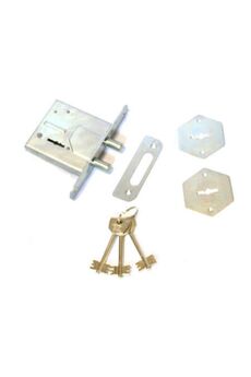 Предназначен для запирания левых и правых дверей толщиной 40-50мм. Имеет 3 ригеля . Удаление ключевого отверстия (backset)- 51 мм Корпус и планки оцинкованы. Комплектуется шестиугольными накладками. Рекомендуется использовать для запирания внутренних дверей и подсобных помещений. Замок имеет сертификат качества. Количество секретов 7000 вариантов. Выход засова 22мм. Диаметр ригеля 11мм. Габаритные размеры:корпус 75х82х16; планка 22х140х2,5мм. Надёжный врезной замок с 4 ригелями, цилиндровым механизмом, защитой от взлома и универсальной установкой для металлических и деревянных дверей.