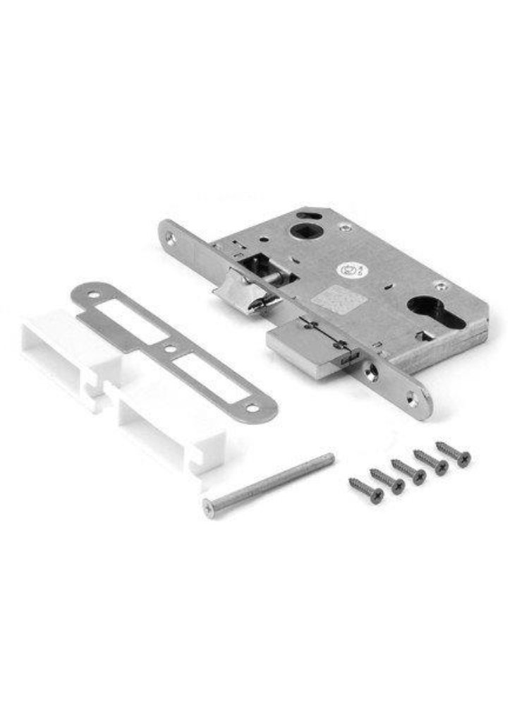 Надежная металлическая защёлка обеспечивает плавное и бесшумное закрывание двери, делая корпус замка идеальным решением для межкомнатных дверей в жилых и коммерческих помещениях. Актуален для офисов, квартир, частных домов, где важна долговечность и простота работы механизмов.