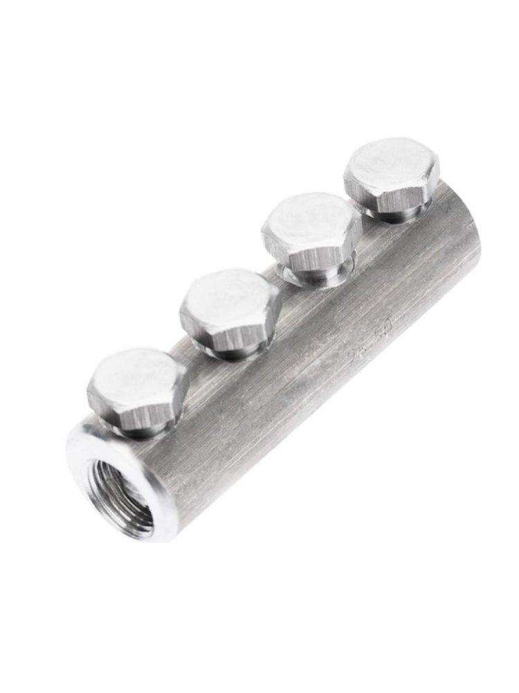 Соединитель болтовой 4СБ-2-005 предназначен для соединения алюминиевых и медных жил кабеля с бумажной маслопропитанной и пластиковой изоляцией до 10 кВ. сечением 70-120мм2 Соединители с конструктивной (монолитной) перегородкой рекомендуются для кабеля с бумажной маслопропитанной изоляцией до 10 кВ. Закрепление соединителя на жиле кабеля осуществляется болтом со срывной головкой, которая скручивается при достижении определенного усилия, обеспечивая надежное соединение. Особенности конструкции: Изделия комплектуются алюминиевыми болтами, которые обеспечивают прочную фиксацию жилы в корпусе изделия. 4СБ имеют эксцентриковое отверстие под жилу. Монолитная перегородка рекомендуется для кабеля с бумажно-маслопропитанной изоляцией до 10 кВ, ее функция - исключить перетекание масла в кабеле с бумажной изоляцией. Для надёжного соединения кабелей сечением 70–120 мм². Быстрый монтаж, высокая прочность и стойкость к коррозии, для профессионального электромонтажа.