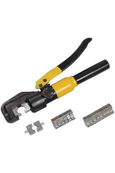 Гидравлические прессы позволяют создавать механические соединения типа кабельная жила-гильза или кабельная жила-наконечник с помощью механической опрессовки. Прессы снабжены сменными матрицами, предназначенными для различных сечений жил. Гидравлические прессы значительно облегчают процесс опрессовки так как требуют применения меньших усилий, чем механические прессы. Гидравлический ручной пресс для обжима наконечников до 70 мм², сила 6 тонн, сменные матрицы, кейс в комплекте — решение для профессионалов.