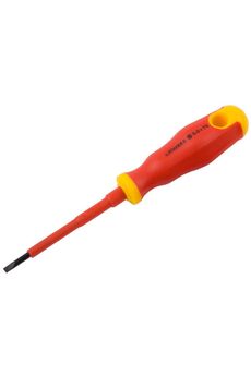 Отвертка диэлектрическая, шлицевая Подходит для работы под напряжением до 1000 В. Изолированная, шлиц 4,0 мм, длина 100 мм, прочная сталь, эргономика для максимальной безопасности.