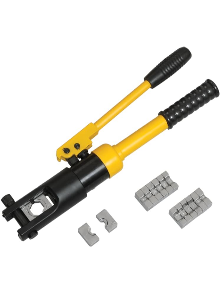 Гидравлические прессы позволяют создавать механические соединения типа кабельная жила-гильза или кабельная жила-наконечник с помощью механической опрессовки. Прессы снабжены сменными матрицами, предназначенными для различных сечений жил. Гидравлические прессы значительно облегчают процесс опрессовки так как требуют применения меньших усилий, чем механические прессы. Ручной пресс с усилием 10 тонн для лужёных наконечников до 240 мм², быстрая работа, компактность и автономность для надёжной опрессовки.