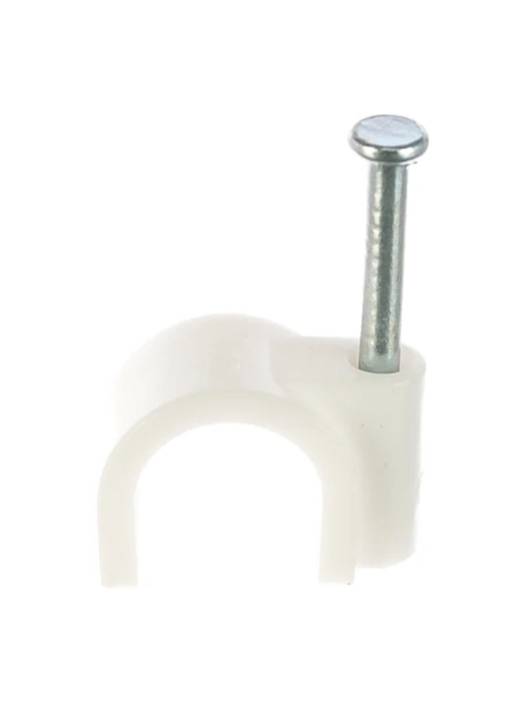 Для прочного крепления кабеля диаметром до 16 мм. Прочный пластик, оцинкованный гвоздь, монтаж на бетон и дерево. В упаковке — 100 штук.