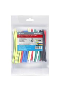 Диаметр до усадки 4 мм; Диаметр после усадки: 2 мм; Длина: 100 мм; Цвета: белый, красный, синий, зеленый, черный, желтый, желто-зеленый; Термоусадочные трубки 4/2 мм, 7 цветов по 3 шт, длина 10 см, надежная изоляция и маркировка проводов в электромонтаже и ремонте.
