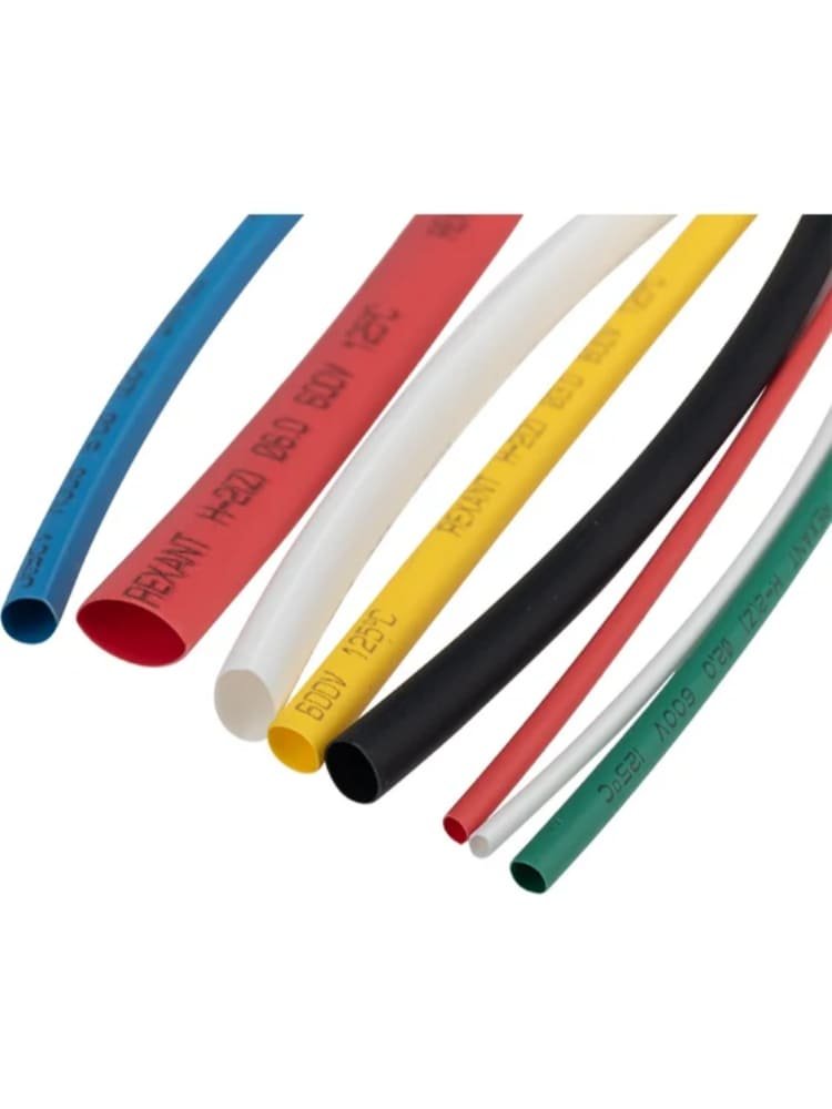 - В комплекте ассорти трубок в семи наиболее востребованных диаметрах (от 1,5 до 13 мм), общая длина — 135 мм на каждую трубку, количество — 70 штук.