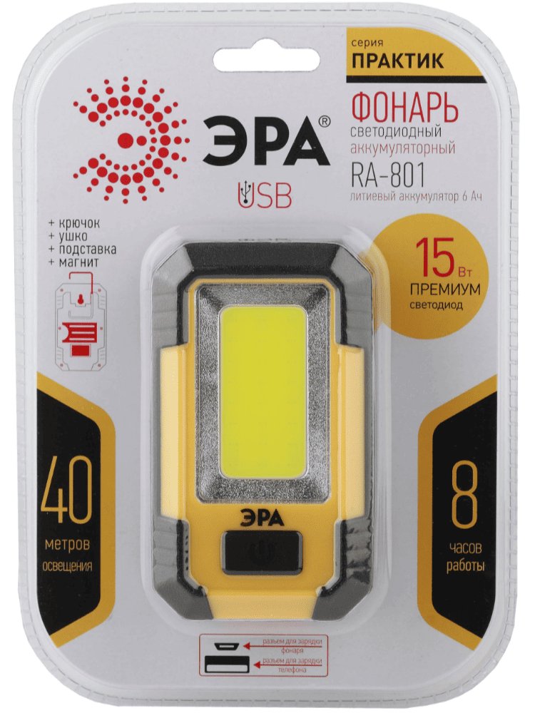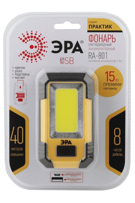 Фонарь Рабочий RА-801 15Вт COB, powerbank, Li аккум, магнит, крючок, ЭРА в Вяземский