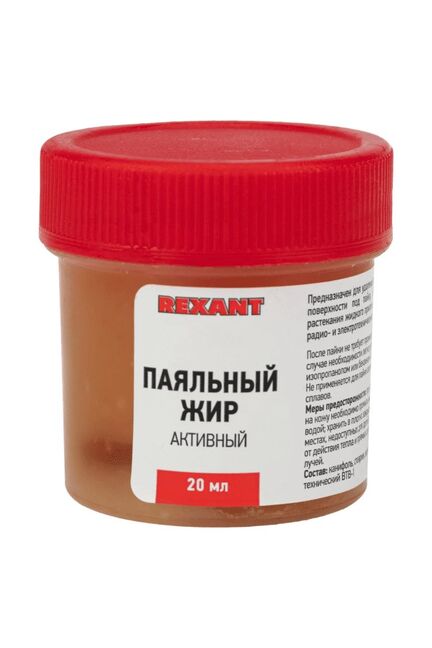 Идеальный выбор для качественных пайки и лужения — активный паяльный жир 20г. REXANT обеспечивает прочное, равномерное соединение металлических поверхностей, подходит для работы с медью, латунью, сталью и их сплавами. Применим в электромонтаже, сантехнических сборках, ремонте электроники и бытового оборудования.