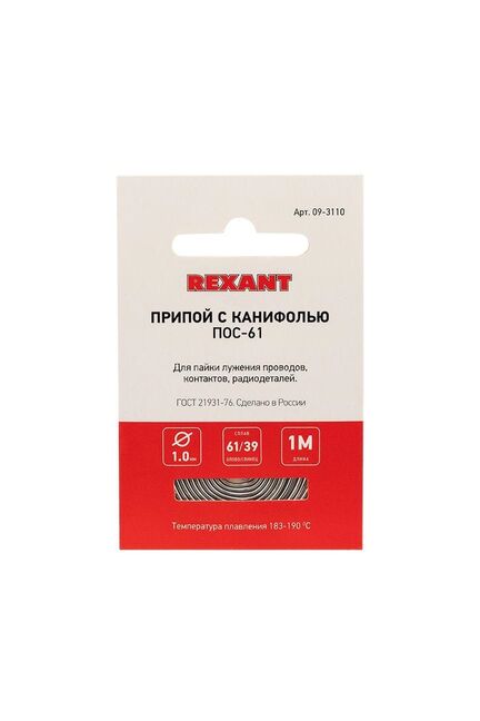 Быстрая и чистая пайка – надежный результат для электроники и ремонта. Припой с канифолью с содержанием олова 61% и свинца 39% подходит для монтажа и ремонта электрооборудования, бытовой техники, плат, проводов и радиокомпонентов.