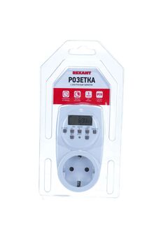 Розетка с электронным таймером REXANT RX - 31A предназначена для подключения бытовых и промышленных приборов большой мощности: утюги, калориферы, светильники, прожектора уличного освещения, электрокотлы и т.д. Характеристики: • 20 программ включения ON / выключения OFF таймера • Функция быстрого отключения работы таймера • Точность хода - 1 минута в месяц • Работа от встроенного аккумулятора - не менее 100 часов Недельный электронный таймер 3500Вт, до 20 программ в сутки, с шагом 1 минута. Позволяет автоматически управлять электроприборами.