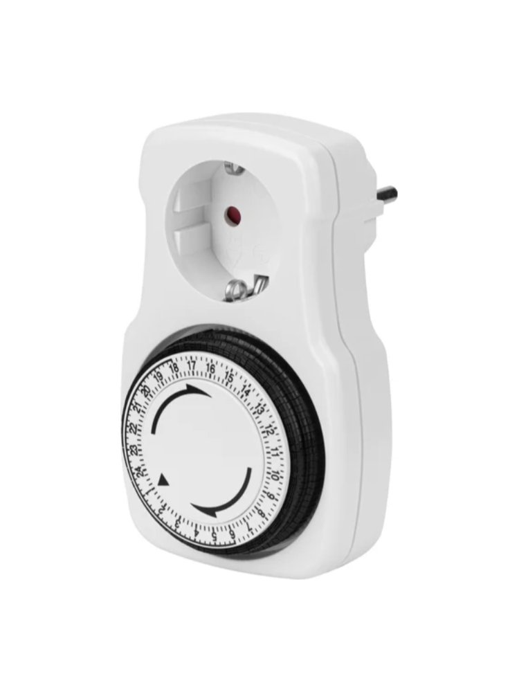 Розетка с таймером необходима для включения и выключения домашних электрических приборов в Ваше отсутствие. Задание программ осуществляется с помощью механического программного диска. Таймер суточный механический, до 48 циклов в сутки, интервал 30 мин, нагрузка до 3500 Вт для автоматизации работы электроприборов.
