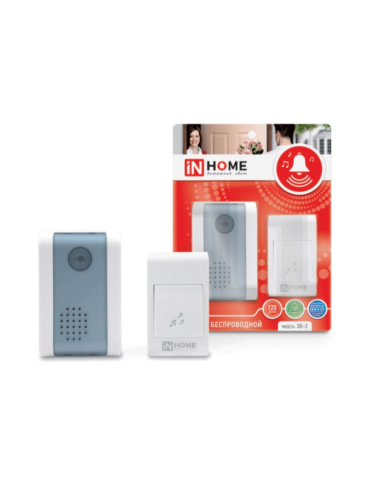 Звонок беспроводной ЗБ-2 32 мелодии 120м с цифр. кодир. с кнопкой БЕЛО-СЕРЫЙ IN HOME в Вяземский