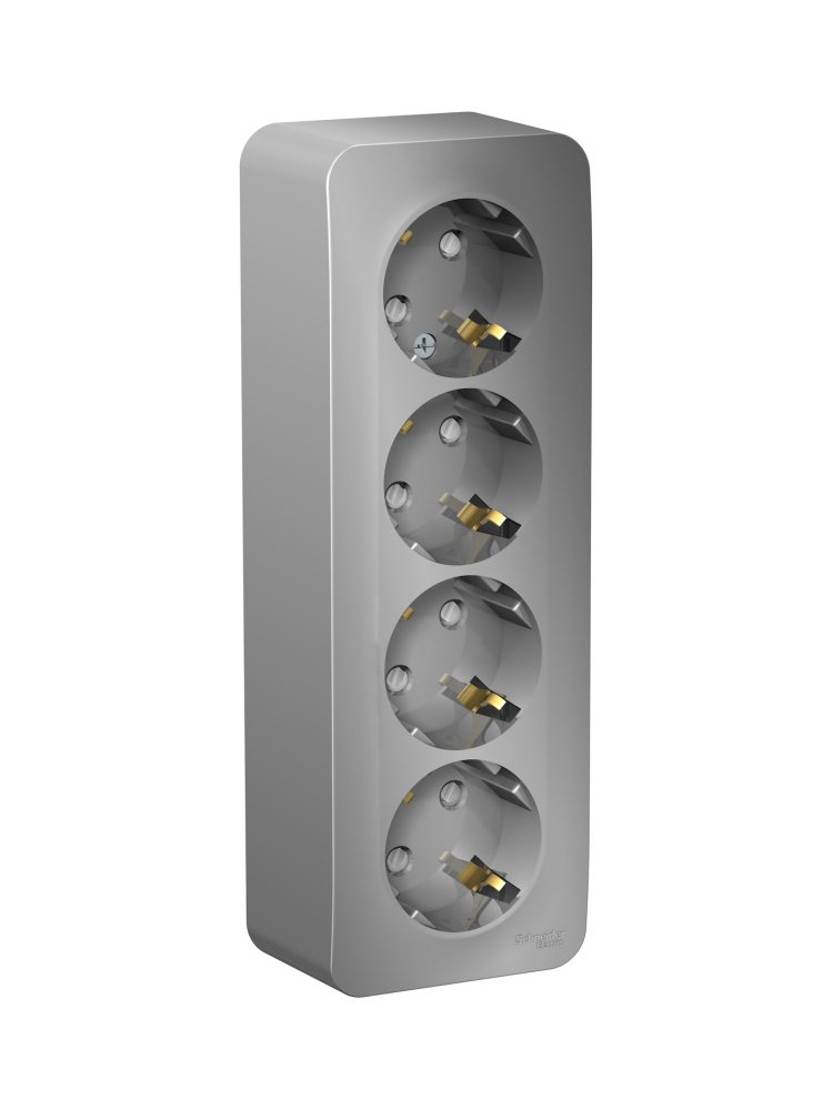 4-постовая накладная розетка, алюминий, с изолирующей пластиной. Безопасный монтаж, устойчивость к нагрузкам и современный дизайн.