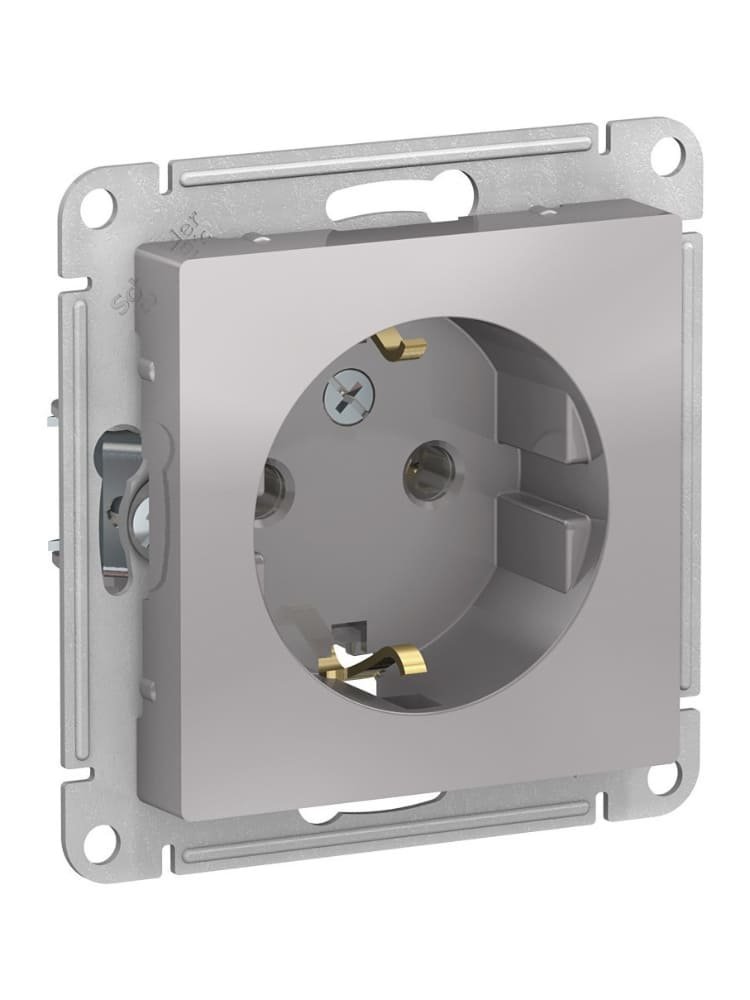 Розетка 1-постовая с з/к 16А механизм, алюминий AtlasDesign SE в Вяземский