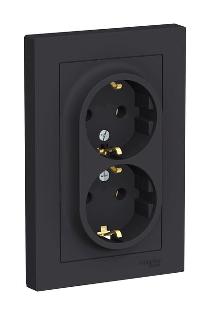 Розетка 2-постовая с з/к со шторками 16А моноблок, карбон AtlasDesign SE
