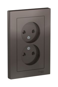 Двойная розетка 16А, цвет мокко. Стиль, надежность, простой монтаж, подходит для дома и офиса. Без заземления, моноблочная конструкция.