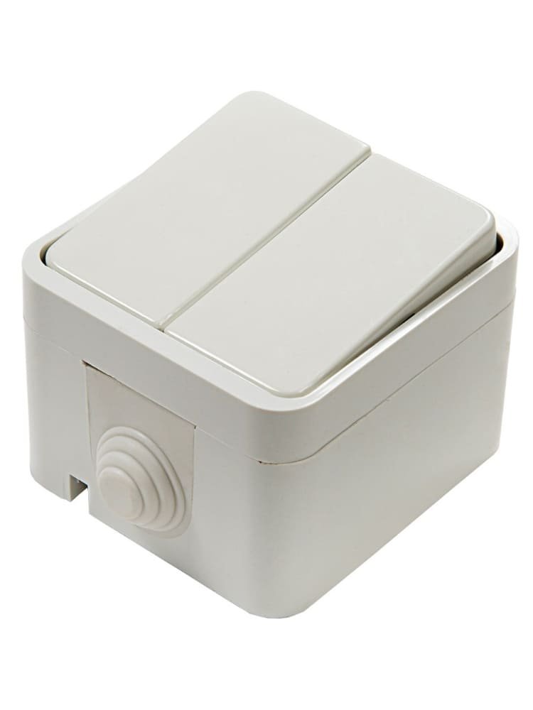 Надежное решение для управления освещением в помещениях с повышенной влажностью и на улице! Двухклавишный выключатель с уровнем защиты IP44 подходит для установки в ванных комнатах, гаражах, мастерских, подсобных помещениях, на верандах и других зонах, где важно защитить электрику от пыли и влаги.