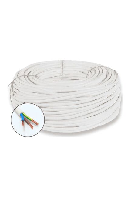 Медный гибкий кабель 3x2,5 мм², длина 5 м, подходит для бытовой электросети, защищён от влаги и прост в монтаже, используется внутри и снаружи помещения.