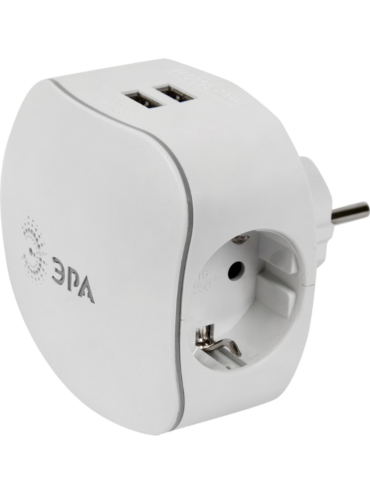 Разветвитель электрический 3 гнезда (тройник) с з/к 16А 2 USB со шторками белый ЭРА