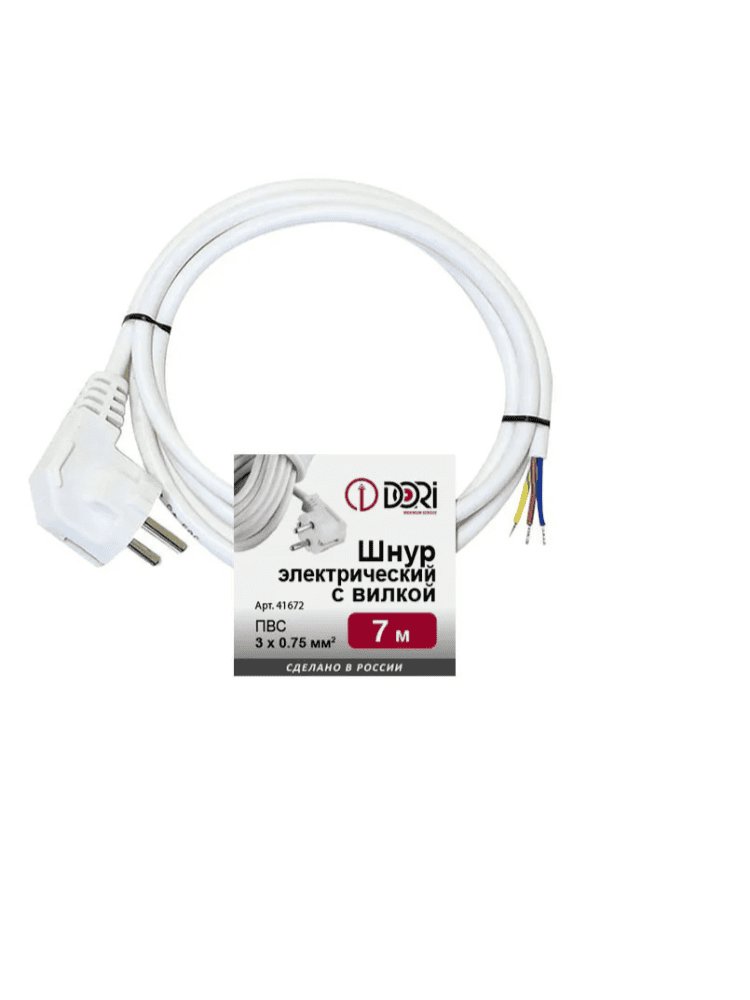 Шнур с вилкой 7м белый ПВС 3*0,75 в Вяземский