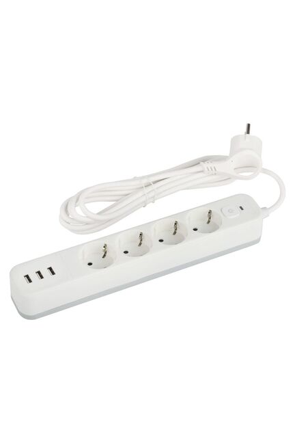 Фильтр сетевой 4 гнезда 1,5м с з/к 10А 3 USB белый(баз.ур.защ.) ЭРА в Вяземский