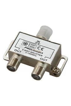 Разветвитель на 2 ТВ (5–1000 МГц) на разъемах F, минимальные потери сигнала, удобен для цифрового и аналогового телевидения, прост в установке.