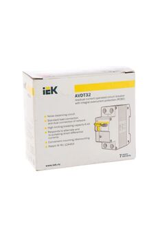 Дифференциальный автомат 2P 63A 30мА IEK защищает от перегрузок, коротких замыканий и утечек тока, подходит для бытового и промышленного применения.