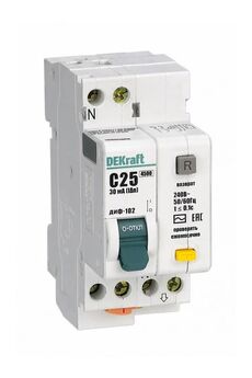 Надежная дифференциальная защита на 25А, 30мА для однофазных сетей, предотвращает утечки, перегрузки и короткие замыкания, простая установка.