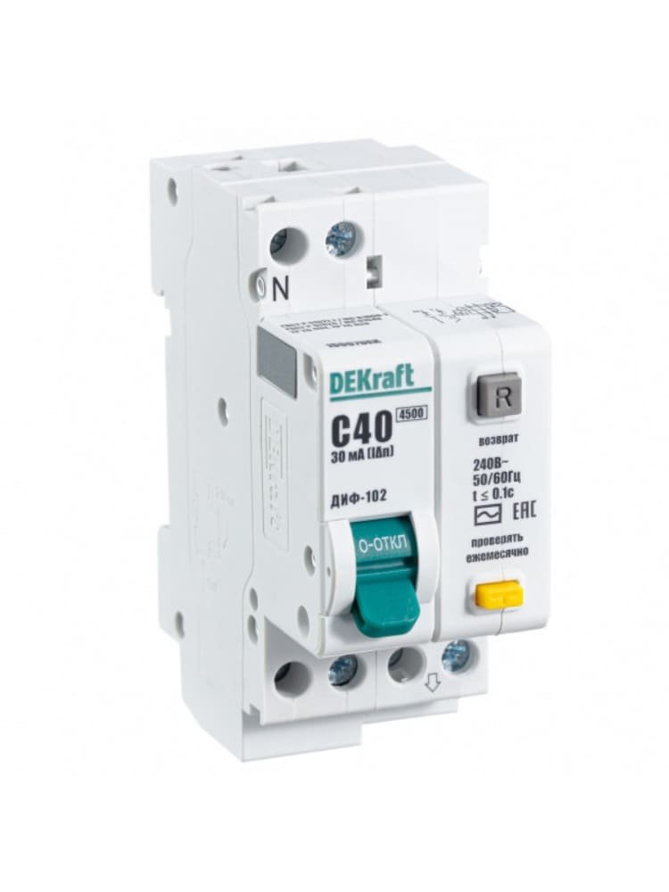 Автомат дифференциальный ДИФ-102 2P 40А 30мА DEKraft в Вяземский