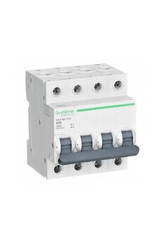 3-полюсный выключатель на 63А, характеристика C, рабочее напряжение 400В, отключающая способность 4,5кА, надёжная защита цепей от перегрузок.